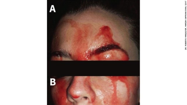 23日付けの医学誌の記事によれば、フィレンツェ大学に籍を置く皮膚科医2人が女性を診察し、正常な皮膚から血液がにじみ出る「血汗症」と呼ばれる珍しい疾患だと結論付けた。医師らはまず抗うつ剤などを投与してうつ病とパニック障害の治療を行い、次に不整脈などの治療に用いるプロプラノロールを処方した。治療によって出血の量は減ったが、完全に止まることはなかった。