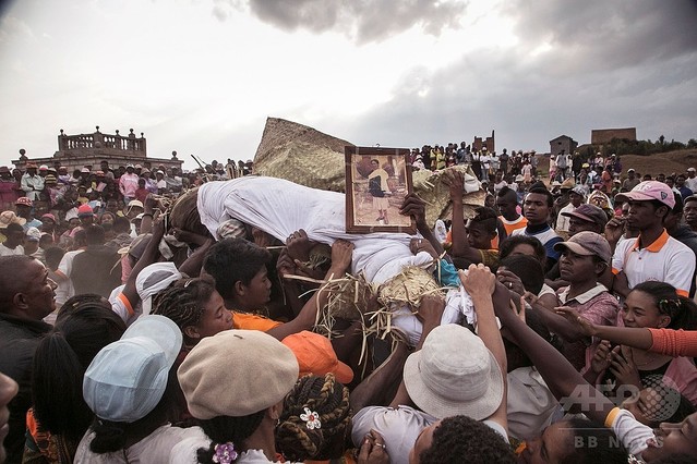 【10月30日AFP】西インド洋の島国マダガスカルには、家族や先祖の遺体を掘り起こして新しい布で包み直し、遺体と共にダンスをするという神聖な儀式がある。