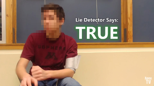この変な主張が本当か確かめるためにApexTVチャンネルは嘘発見器での検査を提案。もちろん未来から来た男も同意。