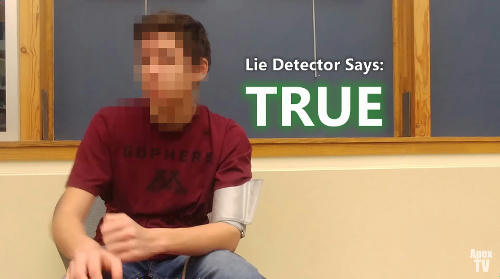 しかし、その字幕映像だけで嘘発見器本体やモニターが表示されておらず検査が正しいのかも不明である。