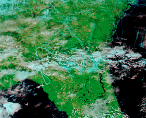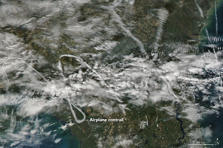 米航空宇宙局(NASA)のゴダード宇宙科学研究所の研究員バスティアン・ヴァン・ディデンホーフェンさんは今月14日、地球観測衛星アクアがとらえた米国南東部上空の画像を眺めていて、不自然な形をしている雲に気づいた。