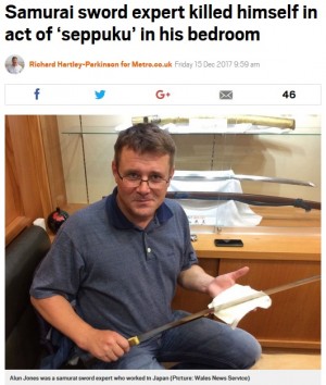 引用元:【英国】日本刀専門家のアランさん、とある日本刀を手にしてから様子がおかしくなり体重が減り、実家の寝室で切腹 死亡