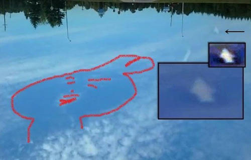 白いのは雲だろうけど、その横の黒いのはどうみても矢印だな