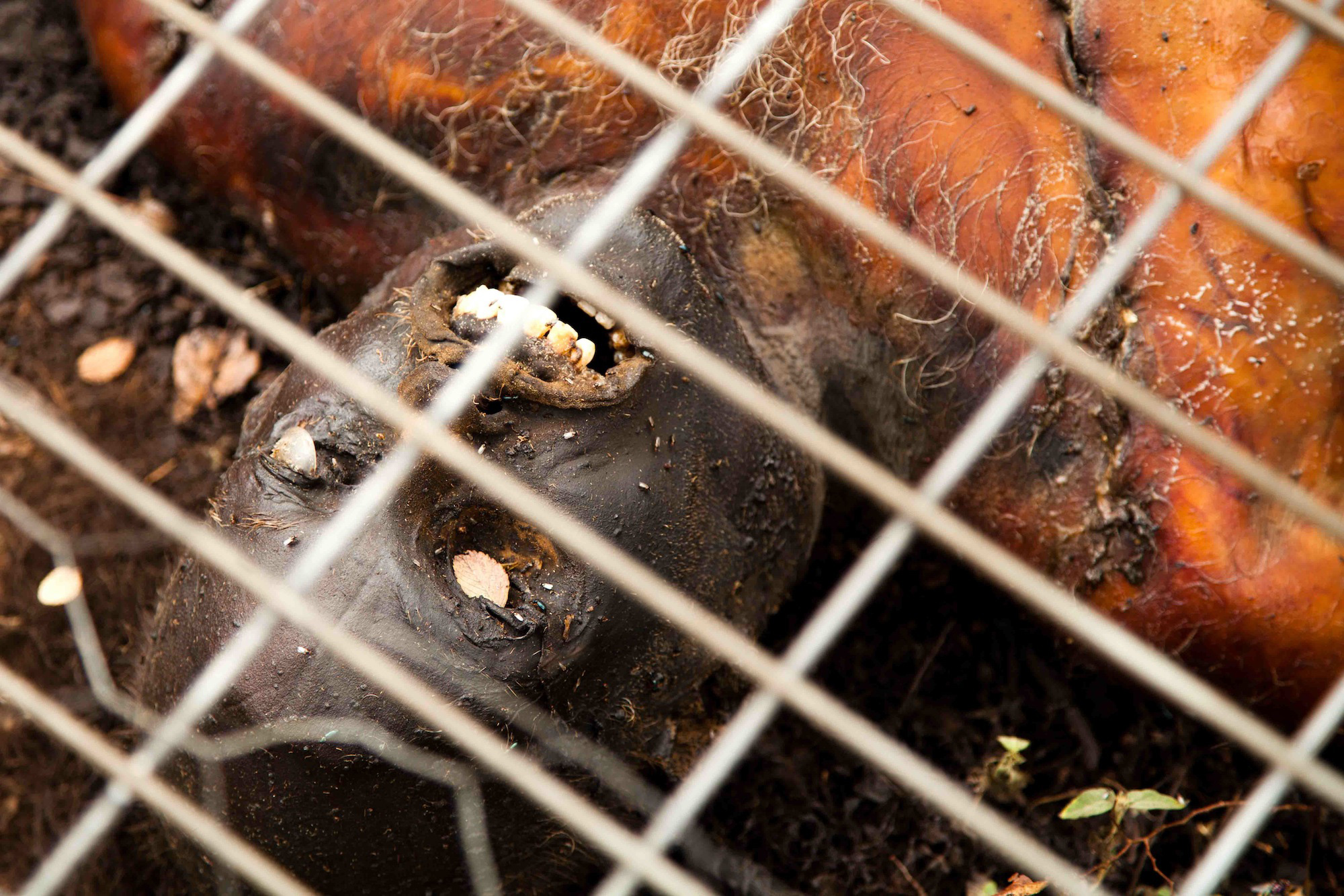 ウサギの死体が微生物に分解されていく様子を高速再生