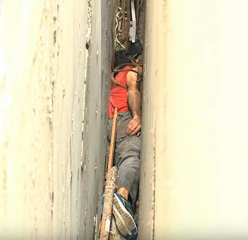閉所恐怖症の人は見ないほうがよいかもしれません。それほど狭い隙間に男性が挟まってしまい、身動きが取れなくなってしまいました。