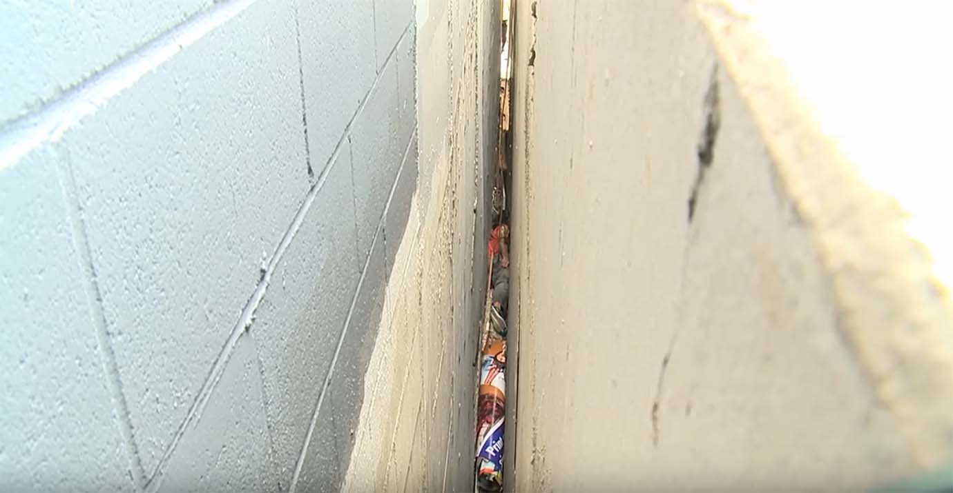 【恐怖】ビルとビルの隙間に挟まって出られなくなった男の動画がヤバイ / ボールを取ろうとして入る