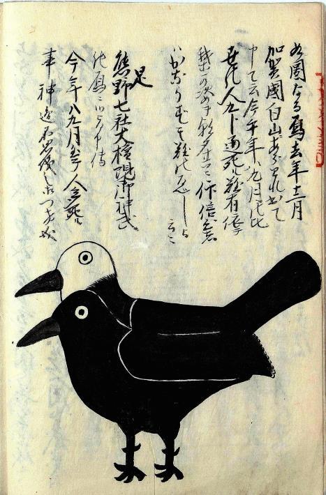 カラスのような黒い鳥だが、二つの頭があり、一つは白色。日記には