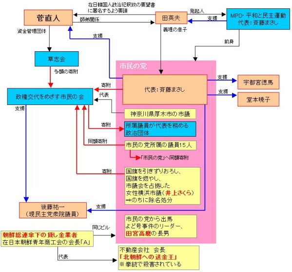 この事件は、菅直人首相の政治資金を管理する「草志会」が北朝鮮の拉致容疑者の親族が所属する団体から枝別れした団体「政権交代をめざす市民の会」に合計6250万円の寄付をしたというものである。