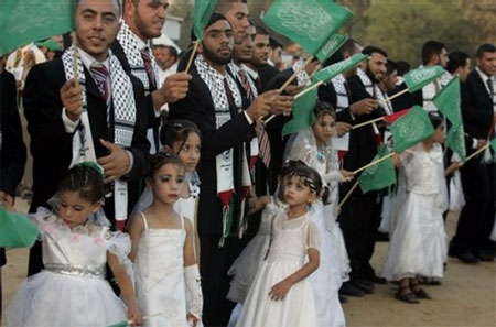 ハマスが集団結婚式 ダマスカスの難民キャンプ