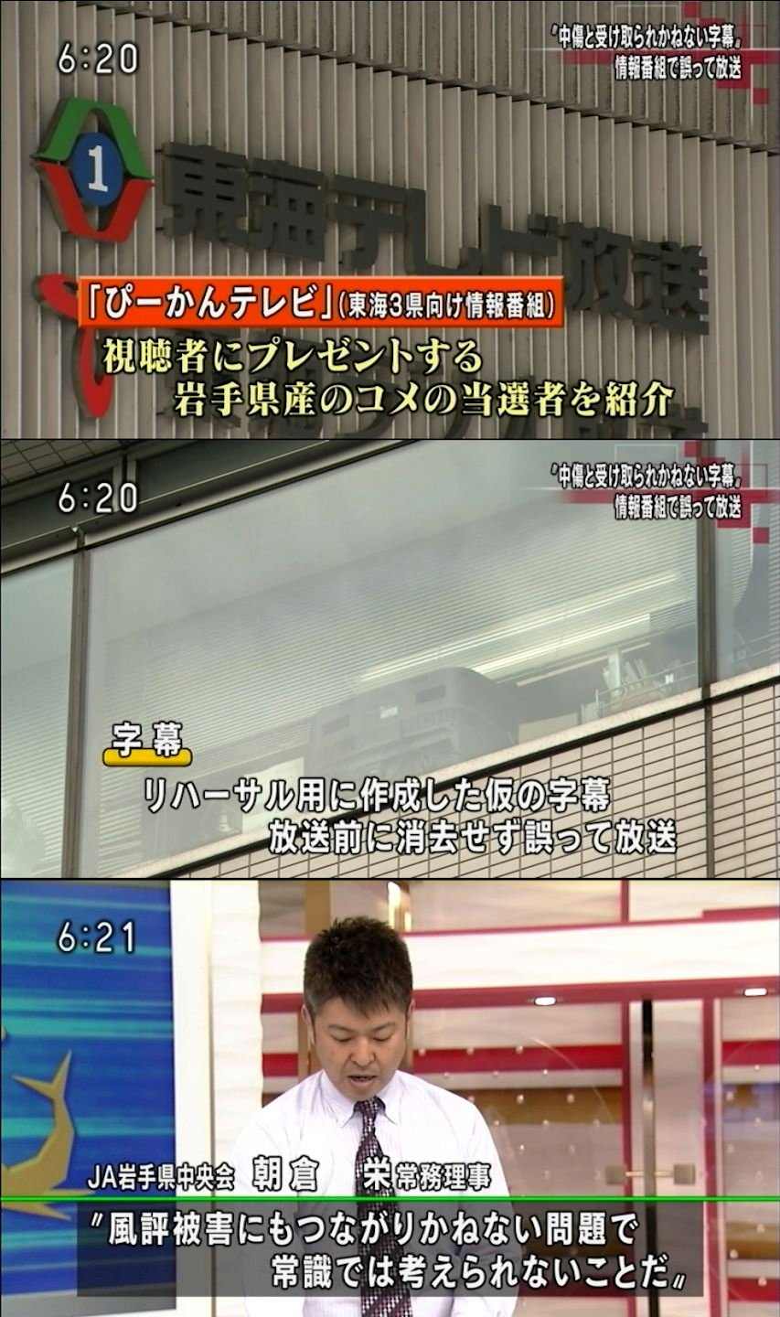◇番組放送中に「怪しいお米 セシウムさん」などが誤表示、東海テレビが謝罪