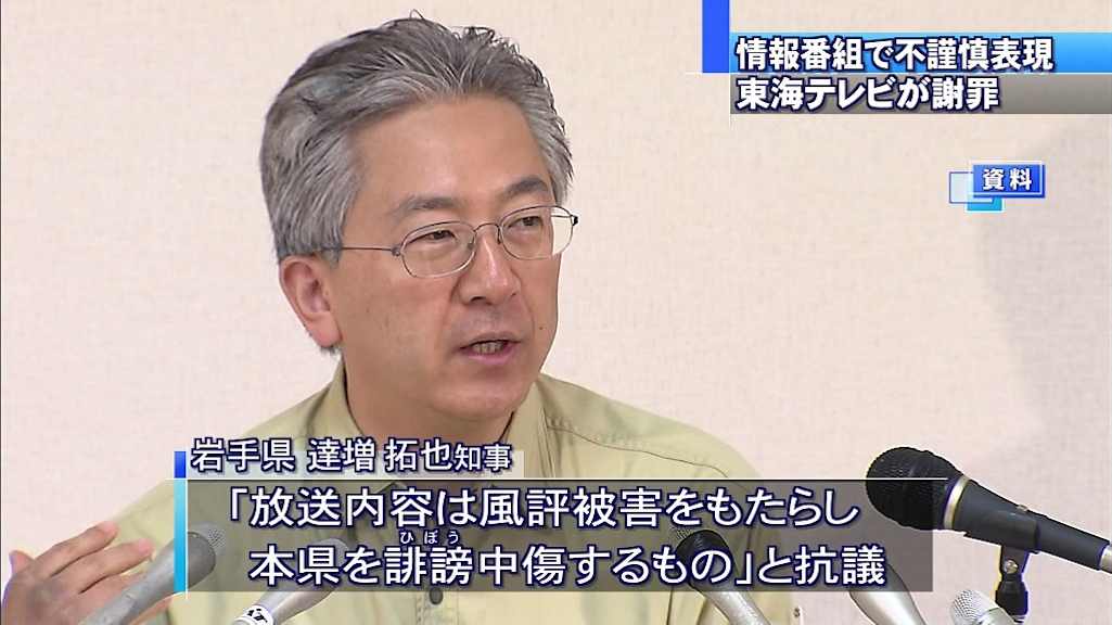 放送内容は、米農家が長年大切に育てあげブランド化してきた努力を踏みにじり風評被害をもたらすとともに、なにより東日本大震災津波からの復興に全力をあげて取り組んでいる本県を誹謗中傷するものであり、本日、岩手県知事から東海テレビ放送株式会社あてに抗議文を発出しましたのでお知らせします。