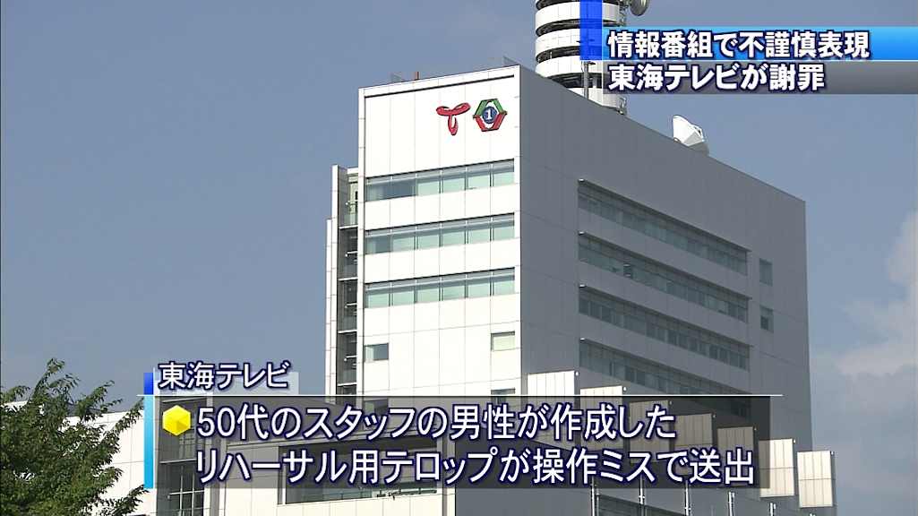 テレビ番組放送中に「怪しいお米 セシウムさん」などの表示が行われたとして、東海テレビが謝罪しました。