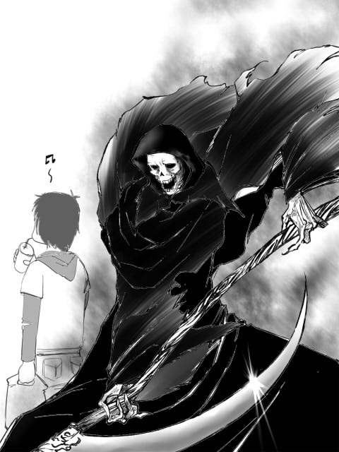 話を聞くと、青いローブを見にまとった骸骨で、大きな鎌を持っているそうで…